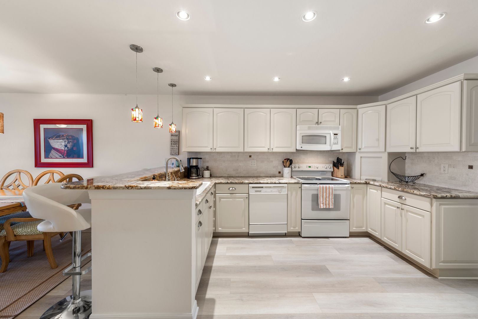 Stunning 2 bed 2 bath townhouse located in Palm Bay Estates available for seasonal rental from November to March. Welcome to your coastal sanctuary just steps from the sugar-white sands of Bonita Beach, where breathtaking bay views, GULF ACCESS, and effortless indoor-outdoor living come together in perfect harmony. The main level features an open and inviting living space with a thoughtfully designed kitchen that captures stunning water views.