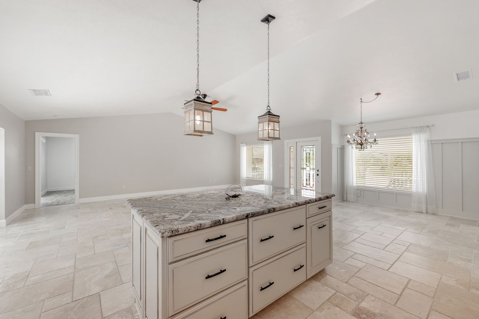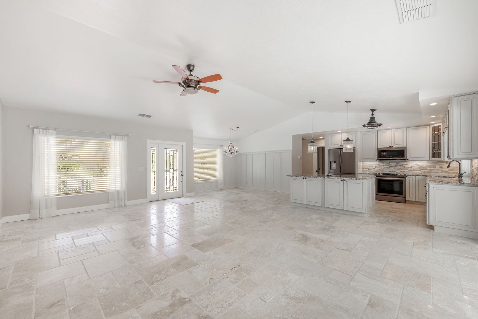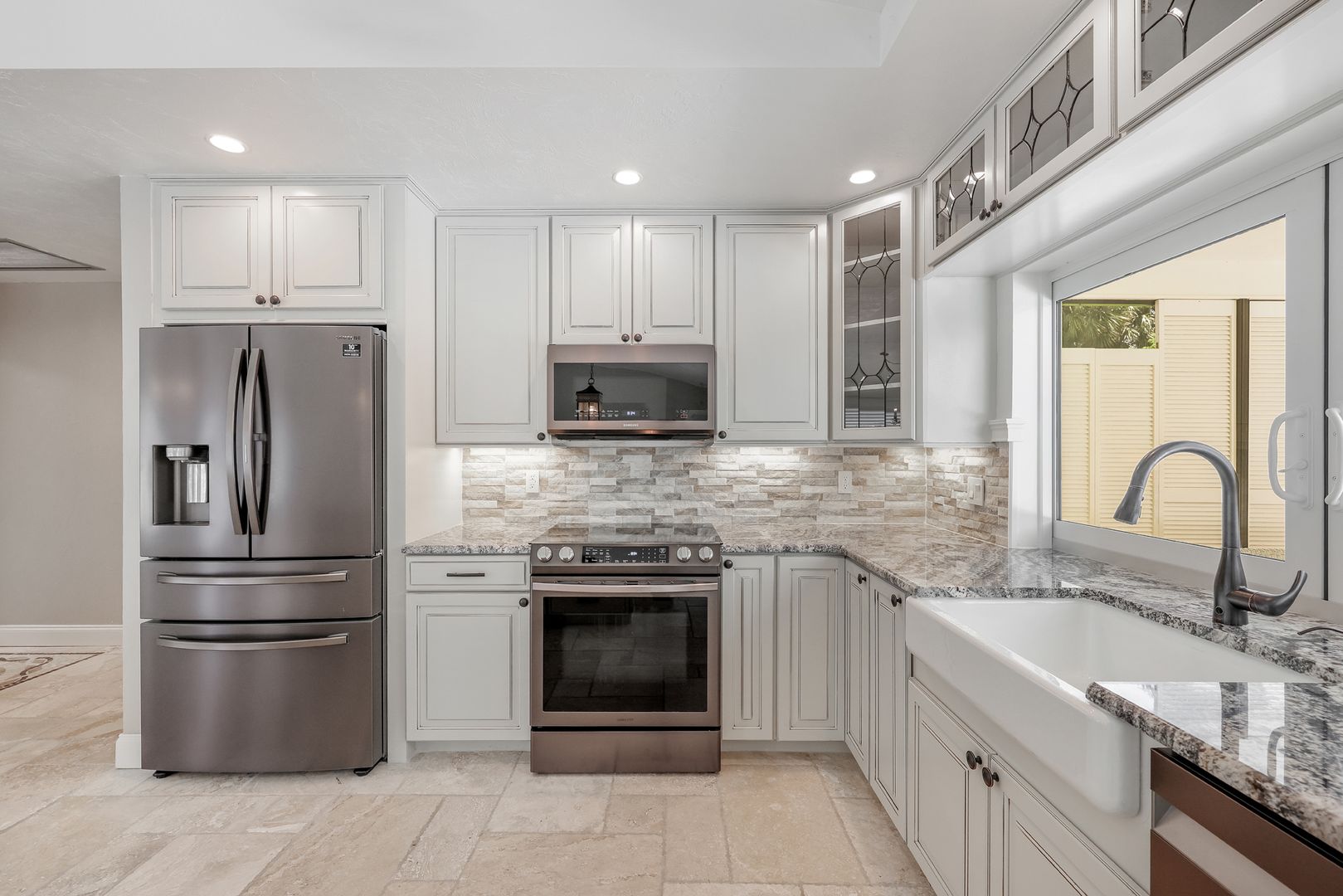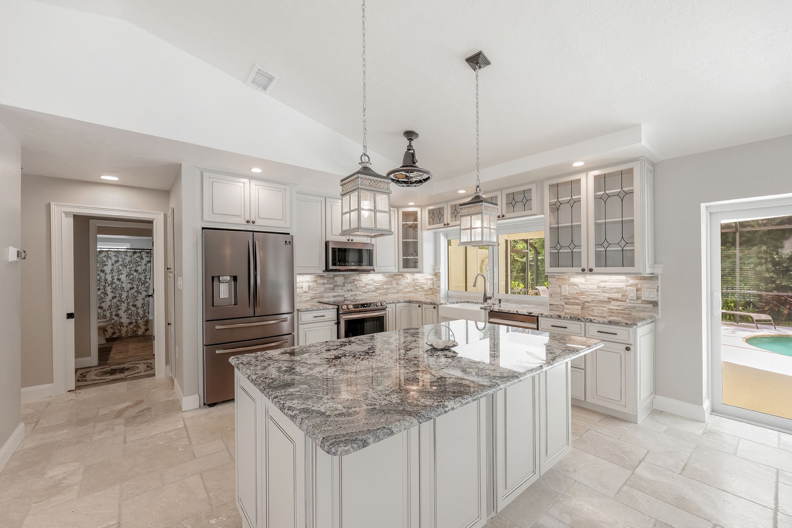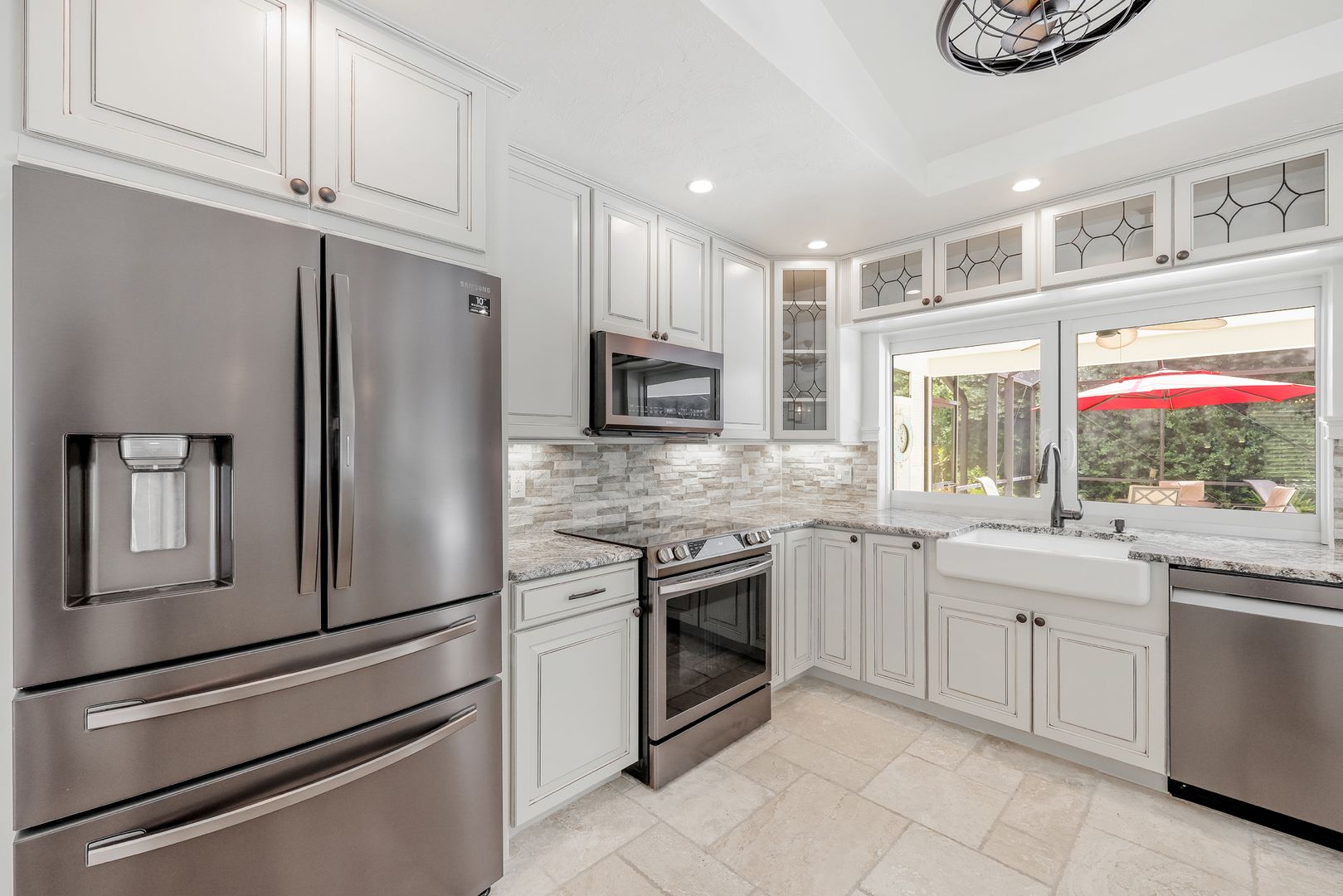 Beautifully remodeled 3 bedroom, 2 bath home with a great open floor plan! Soft white cabinetry with glass inserts, complimentary plumbing, bronze hardware and Tuscany colored built-in appliances, undermount farmers white porcelain sink, counter-height center island with granite tops. accent back-splash and a convenient pass-through window out to the lanai. Priority suite has a private sliding entry to the lanai and there are two extra bedrooms for family and guests with plank wood style tile in all three bedrooms. Enjoy the sought after outdoor lifestyle with two areas. Upon entrance a large paver porch plus a covered Lanai in the rear. The backyard lanai is perfect for entertaining with an under cover sitting area or enjoy a dip in the pool surrounded by a built-in screen. This home is situated on an oversize lot which offers complete privacy in the backyard, nothing but nature and trees! Plus it offers plenty of a grassed in area to enjoy a game of cornhole, croquet, badminton, or just sitting out on the swing. In the community of Spanish Wells there are also opportunities for a variety of optional memberships to fit your lifestyle including golf, sports, social, dining. This community is close to everything, shopping, fine and casual dining and beach lovers, Bonita Beach is just a short ride down the road!